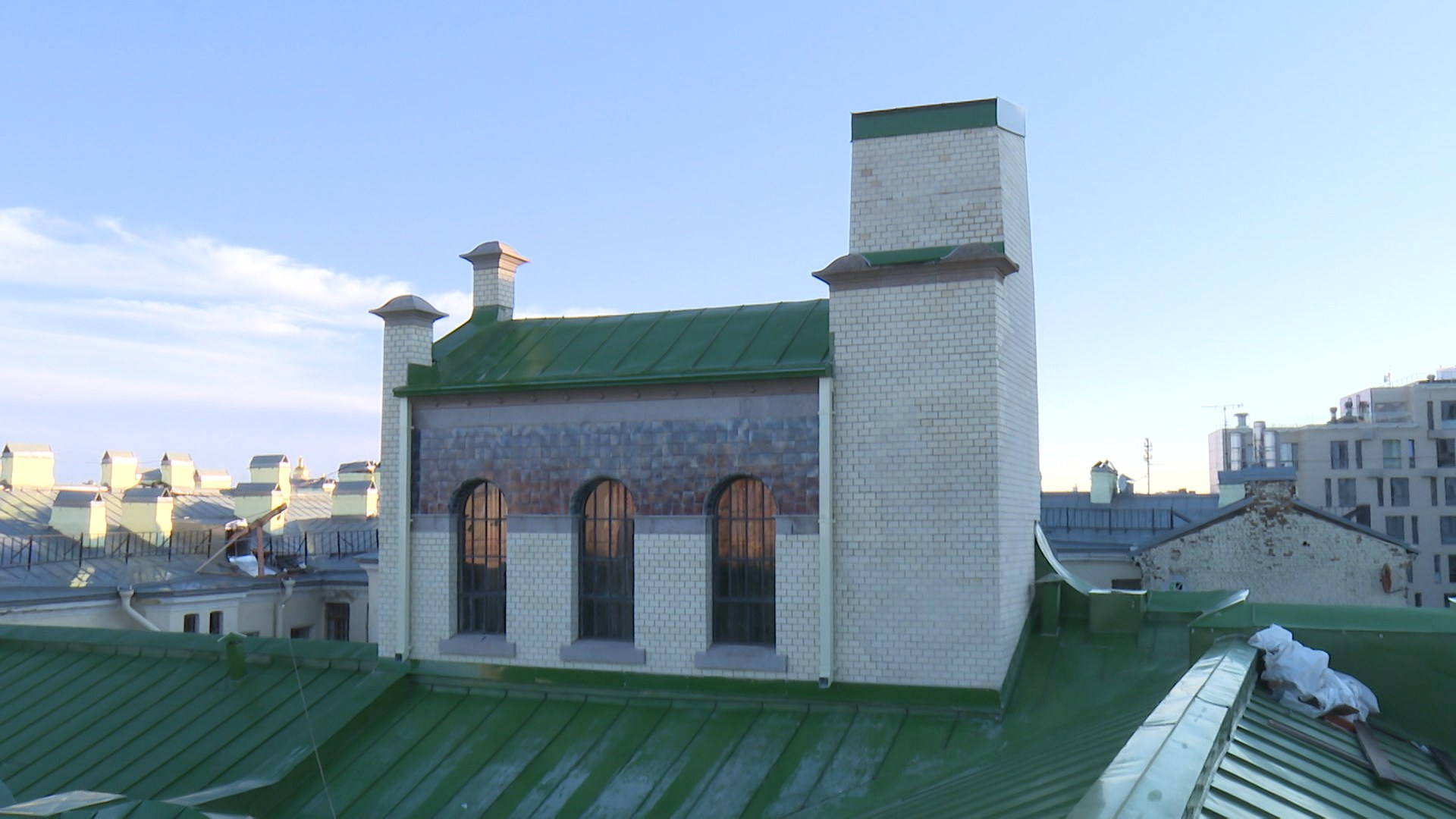 На улице Марата восстановили исторические фасады котельной на крыше Дома «Бажанов и Чувалдина»