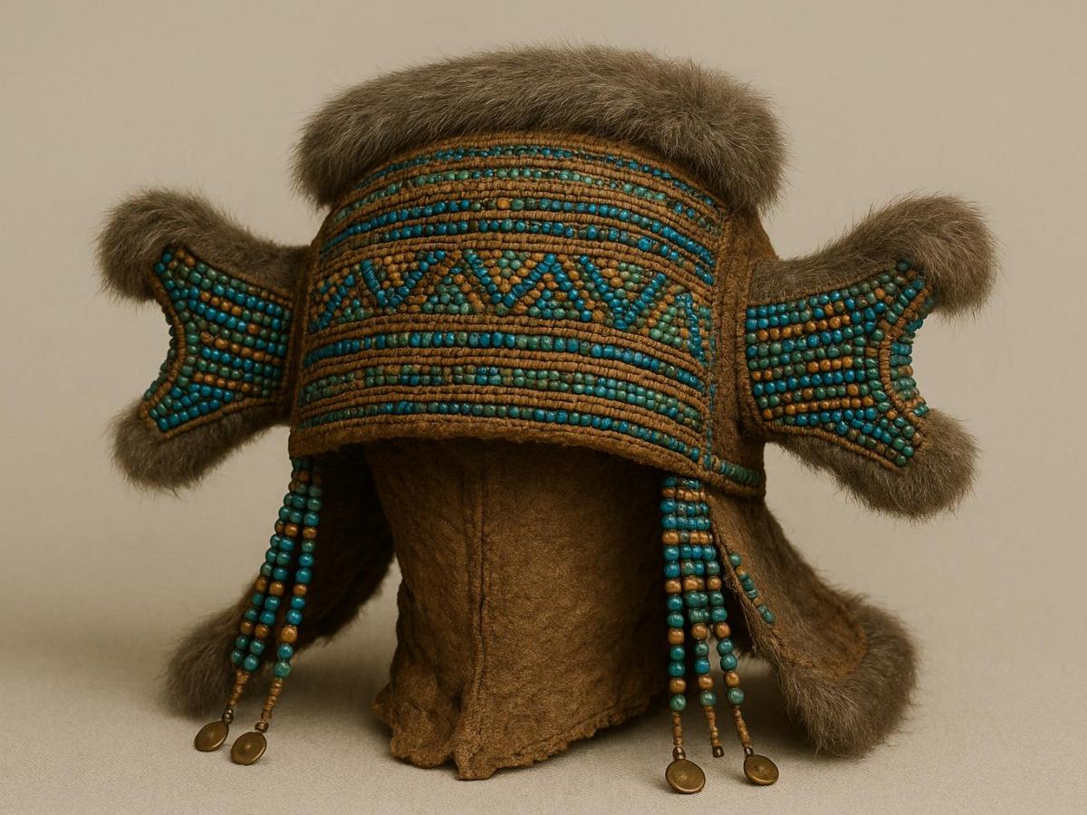 Почему шапка могла быть церемониальной?Богатое украшение, бисер, мех и металлические элементы говорят о ритуальном, а не бытовом назначении.