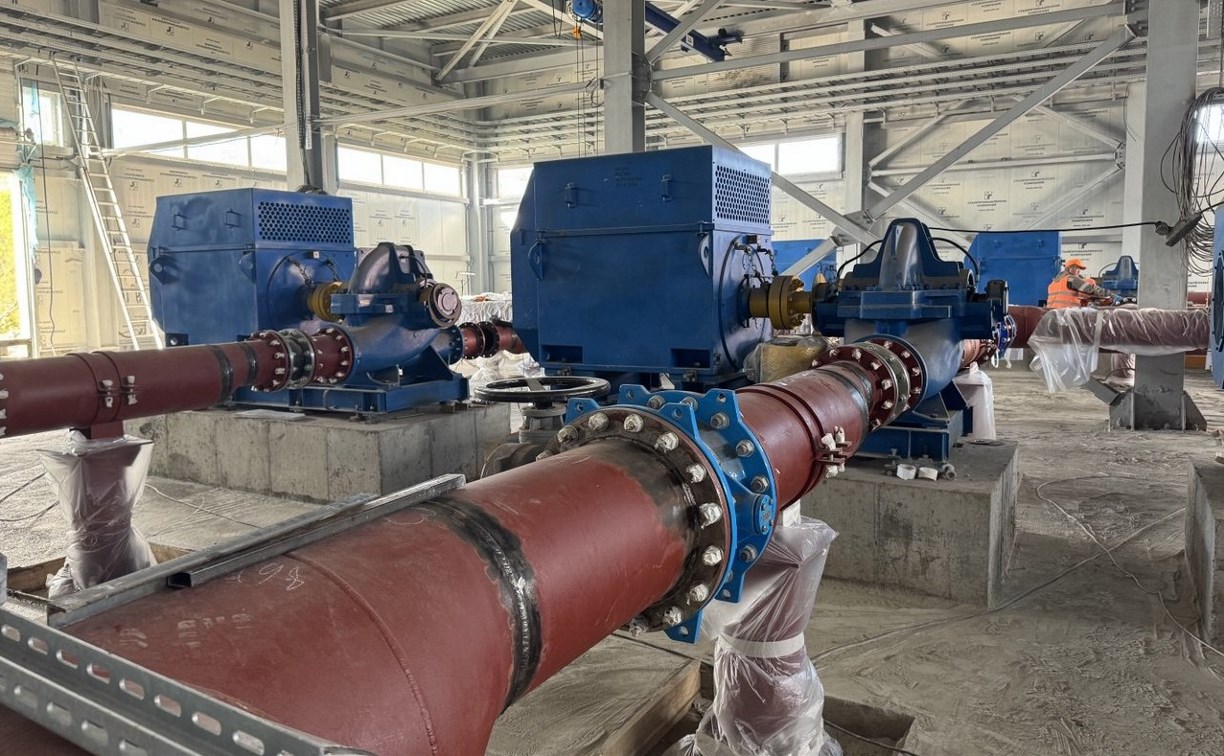 Насосы уже смонтированы, произведена их обвязка. В насосной станции продолжаются работы по электрике, освещению и монтажу сопутствующего оборудования. В ближайшее время поступят электролизные установки, которые обеспечат очистку и обеззараживание воды перед подачей в город.