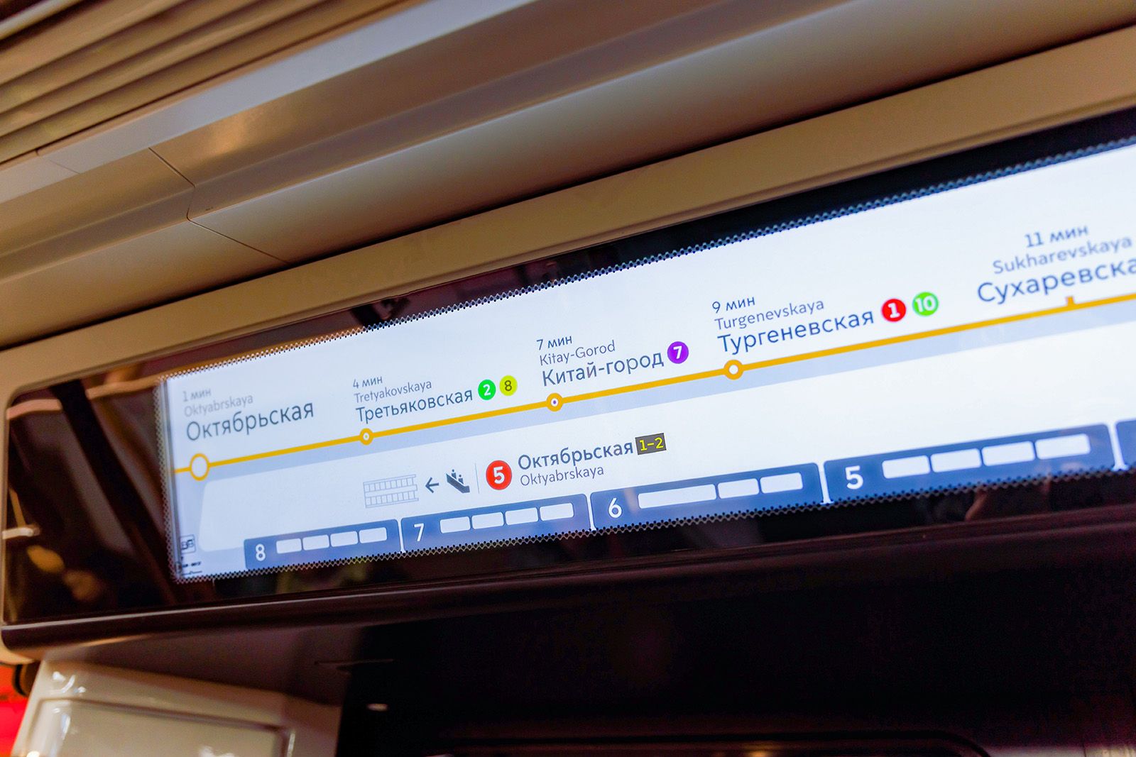 Помимо направлений к пересадкам, пассажиры с помощью улучшенной наддверной навигации могут узнать информацию о номере вагона, наличии эскалаторов и лифтов на станции. Дополнительно система показывает ключевые объекты, расположенные рядом со станциями метро.