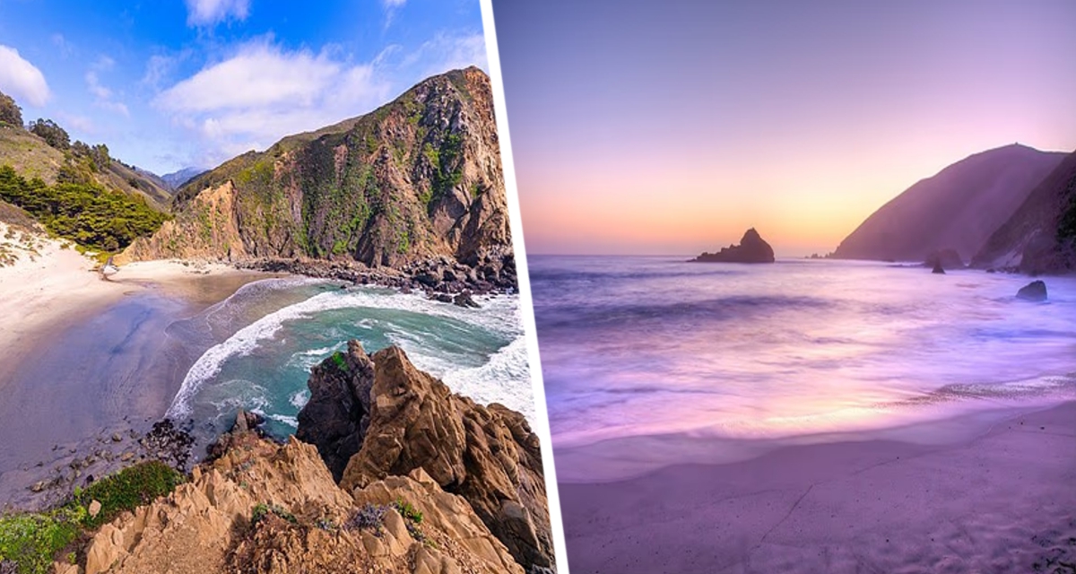 Большинство известных пляжей с фиолетовым песком расположено в Северной Америке. Один из самых ярких примеров – пляж Пфайффер в Калифорнии. Уникальный цвет песка здесь обусловлен вымыванием фиолетовых минералов, таких как гранат, с близлежащих холмов и скал.