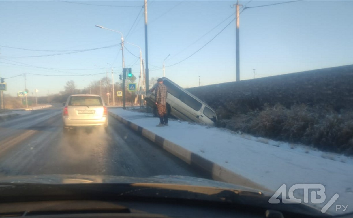 ДТП произошло утром, 3 ноября, в Дальнем. По словам очевидцев, на дорогах очень скользко. Предположительно, водитель Toyota Hiace не справился с управлением. В результате авто "ушло" в кювет передней частью. Сообщений о пострадавших нет.