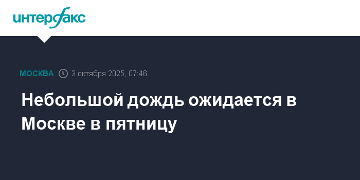 Небольшой дождь ожидается в Москве в пятницу