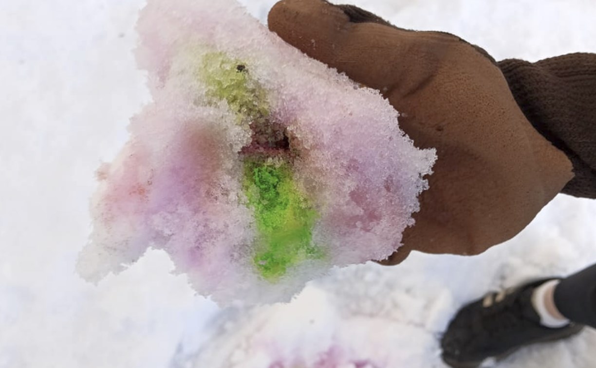 Розовые пятна на снегу с веществом, предположительно являющимся отравой для крыс, были замечены в минувшие выходные на улице Звездной, Молчанова и проспекте Циолковского.