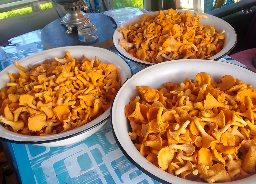 Новгородские любители ходить «по грибы» набирают целые тазики лисичек
