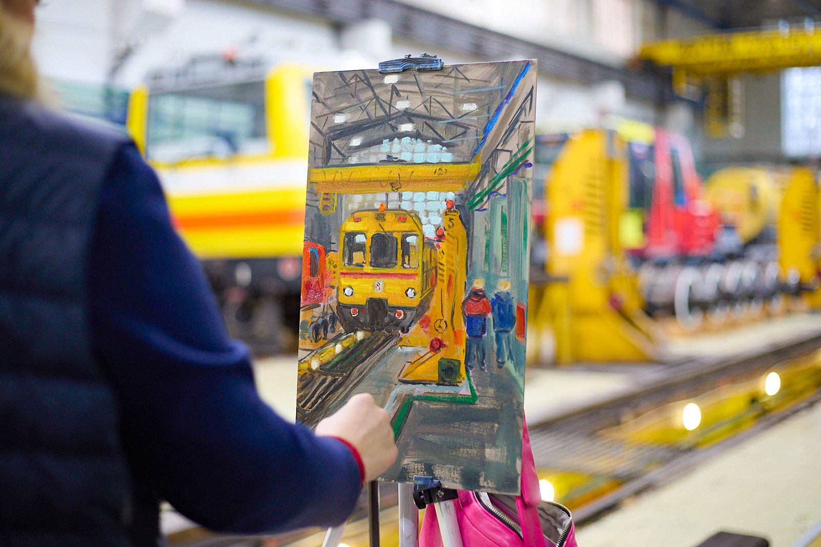 В преддверии Международного дня акварели для участников проекта «Искусство в метро» провели выездное художественное мероприятие. Оно прошло в электродепо «Красная Пресня». 9 мастеров, работая в единой технике, создавали картины с видами интерьеров исторического депо и современных поездов серии «Москва‑2020», готовящихся к выходу на линию.