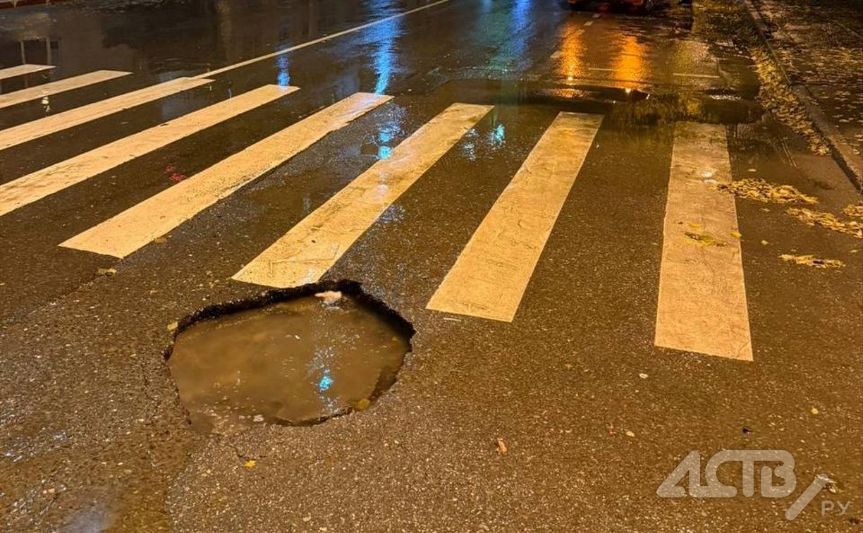 Глубокая яма на дороге стала ловушкой сразу для нескольких автомобилей в Южно-Сахалинске. 30 октября во время дождя она скрылась под водой и стала незаметной.