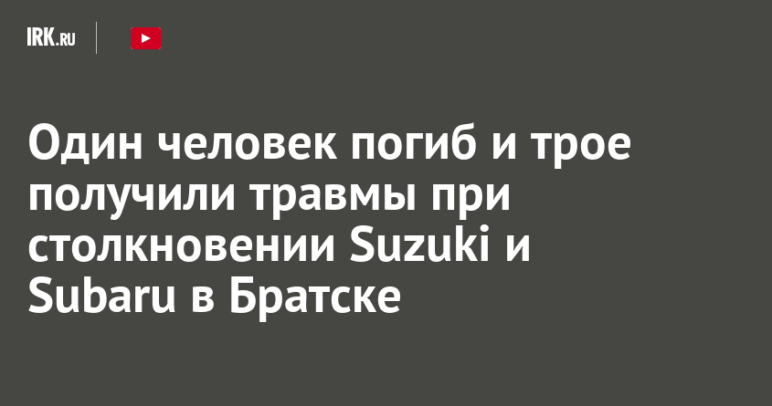 Один человек погиб и трое получили травмы при столкновении Suzuki и Subaru в Братске