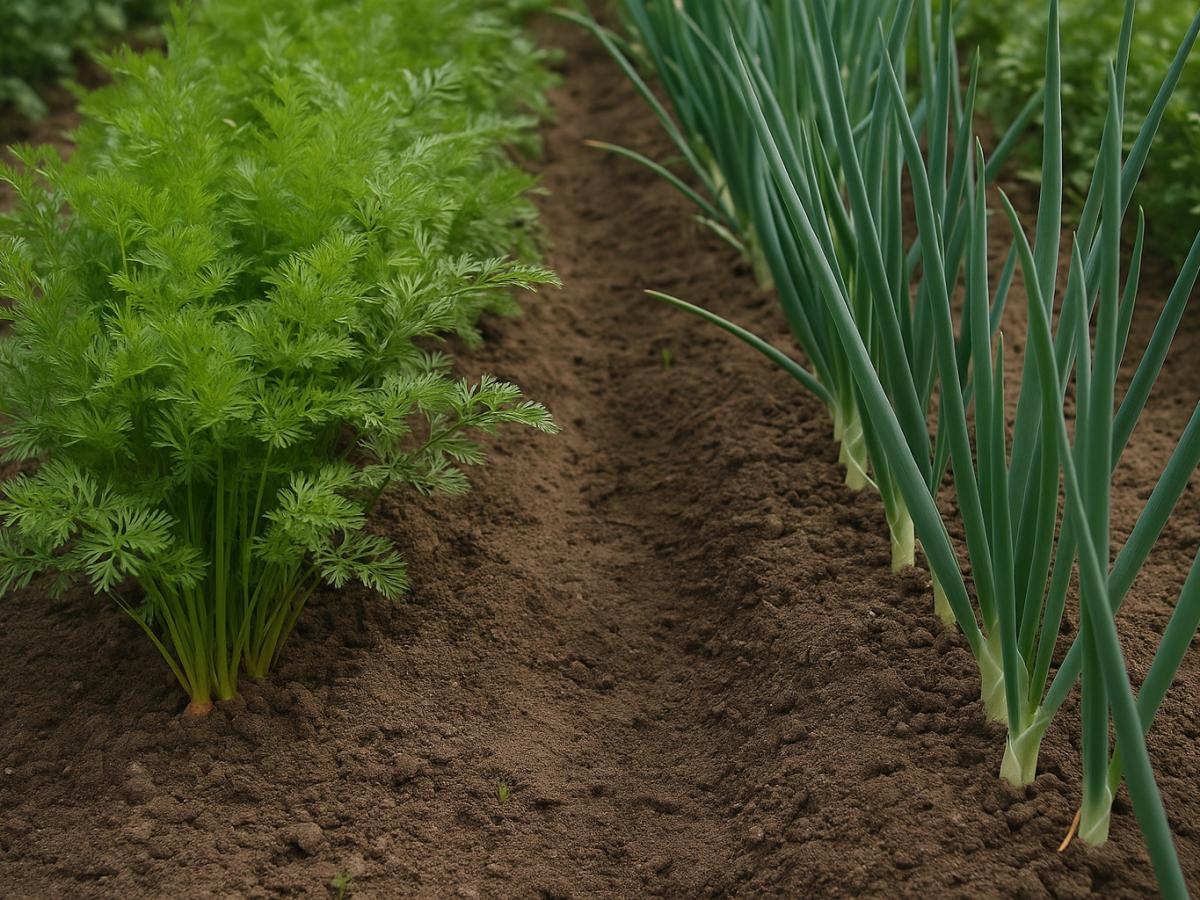 Фото: Generated by AI (DALL·E 3 by OpenAI) is licensed under Free for commercial use (OpenAI License) грядка лука и моркови Плюсы сева моркови под зиму Ранний урожайОдним из основных преимуществ осеннего посева моркови является возможность получить более ранний урожай. Так как семена начинают прорастать сразу, как снег растает весной, это позволяет избежать некоторых весенних заморозков и завершить вегетацию моркови раньше.