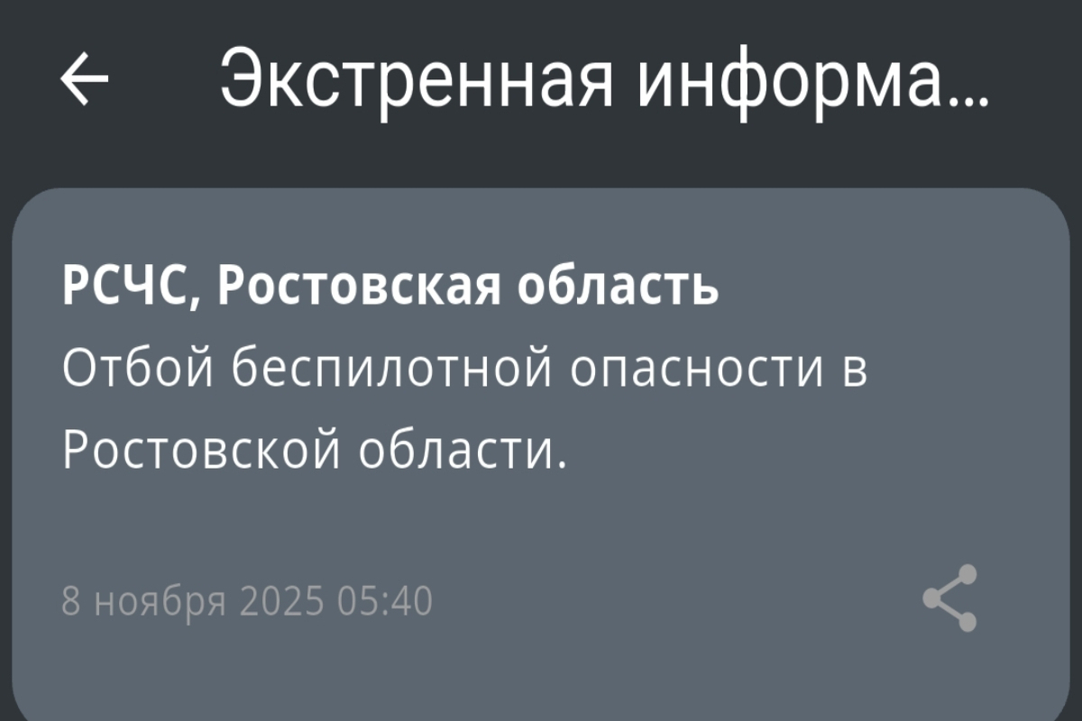 На следующий день утром на территории Ростовской области сообщили об отбое беспилотной опасности.