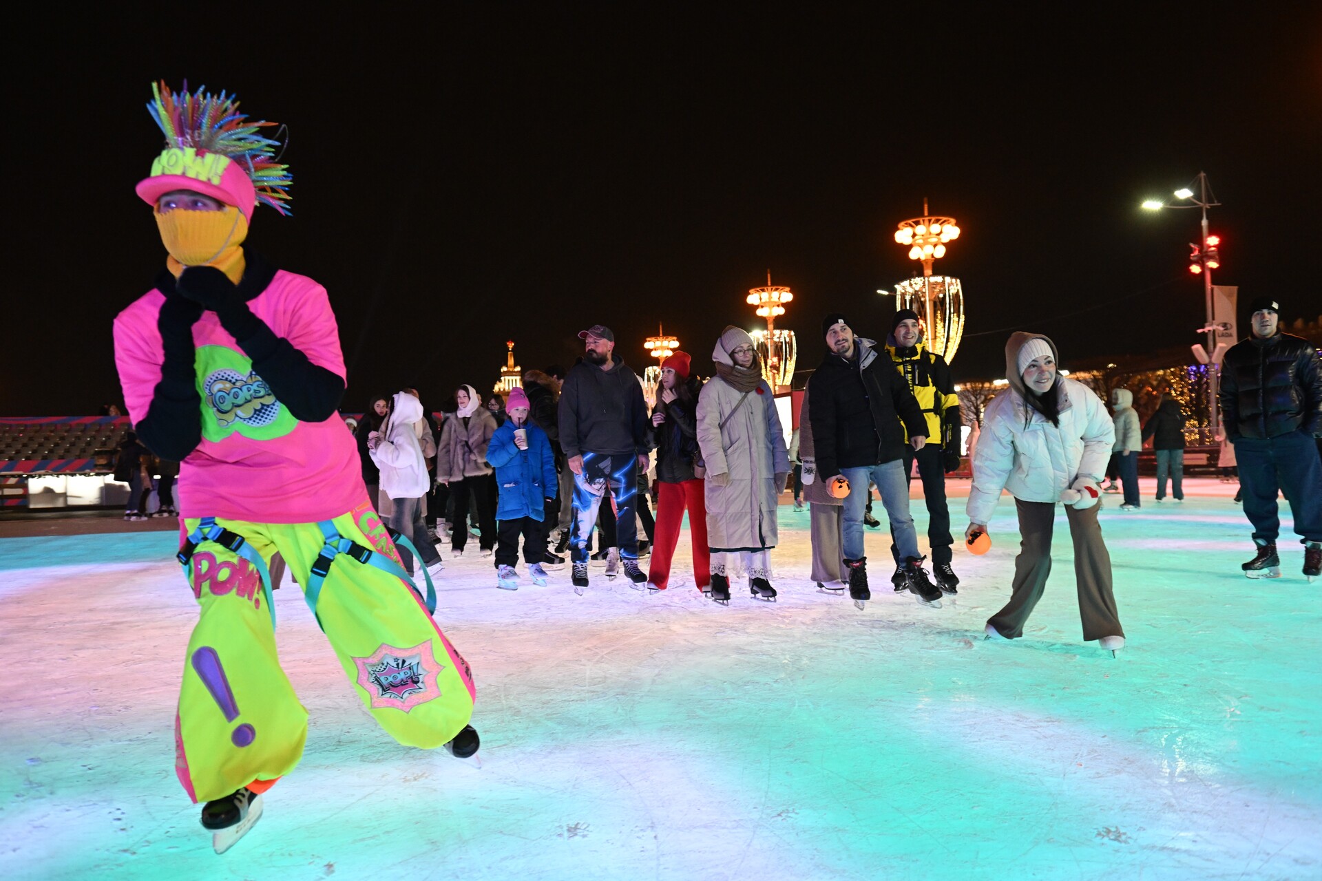 По ее словам, культурная программа в этом году включает выступления фигуристов, артистов балета и танцевальных коллективов. Сергунина отметила, что ключевой площадкой станет каток, расположенный вдоль Главной аллеи, вокруг фонтанов «Дружба народов» и «Каменный цветок». Ожидается, что там 28 и 29 ноября пройдут театральные постановки, выступят акробаты.