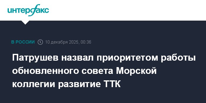 Москва. 10 декабря. INTERFAX.RU - Приоритетом в работе обновленного совета по защите национальных интересов в Арктике Морской коллегии РФ станет развитие Трансарктического транспортного коридора (ТТК), сообщил председатель коллегии, помощник президента России Николай Патрушев.