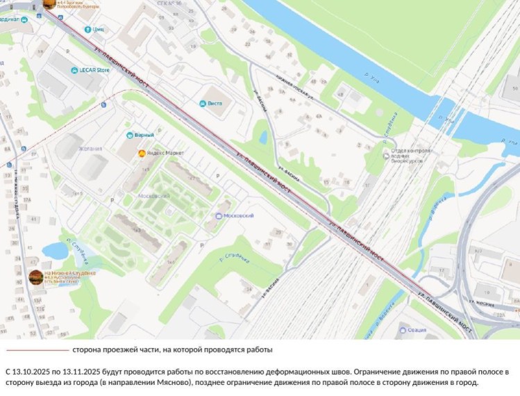 Ремонт будет проводиться поэтапно. Сначала закроют правую полосу в сторону выезда из города в направлении Мясново, затем ограничения коснутся правой полосы в сторону движения в город.