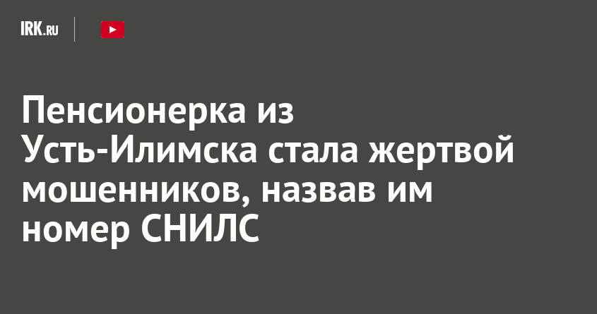 Пенсионерка из Усть-Илимска стала жертвой мошенников, назвав им номер СНИЛС
