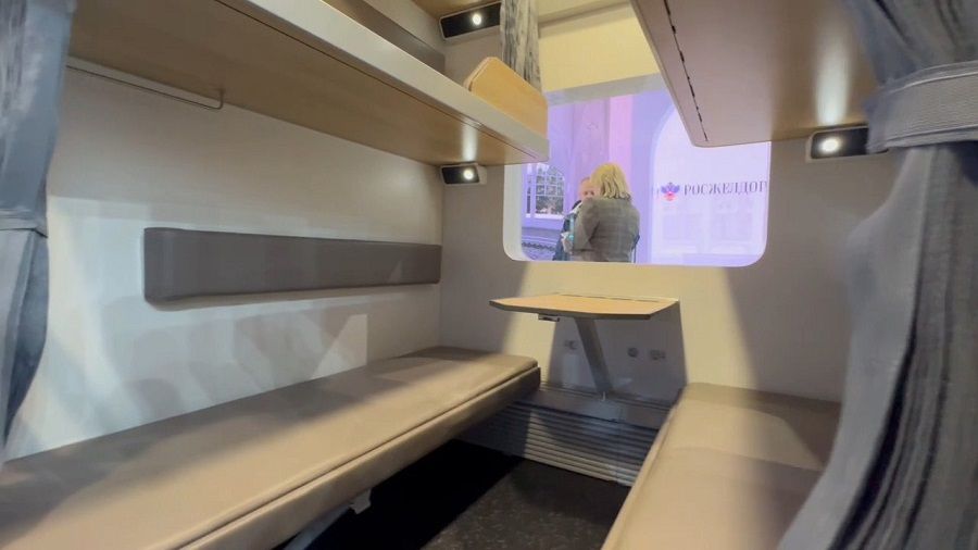 Пассажирских мест стало больше — их 58 вместо 54. Поперечные полки стали длиннее на 14 сантиметров и шире на 3 сантиметра, боковые — на 10 и 4. На каждом месте появились шторки, светильники, воздуховоды, USB и розетки 220 В. В вагоне разместили две санитарные комнаты и отдельную душевую кабину.