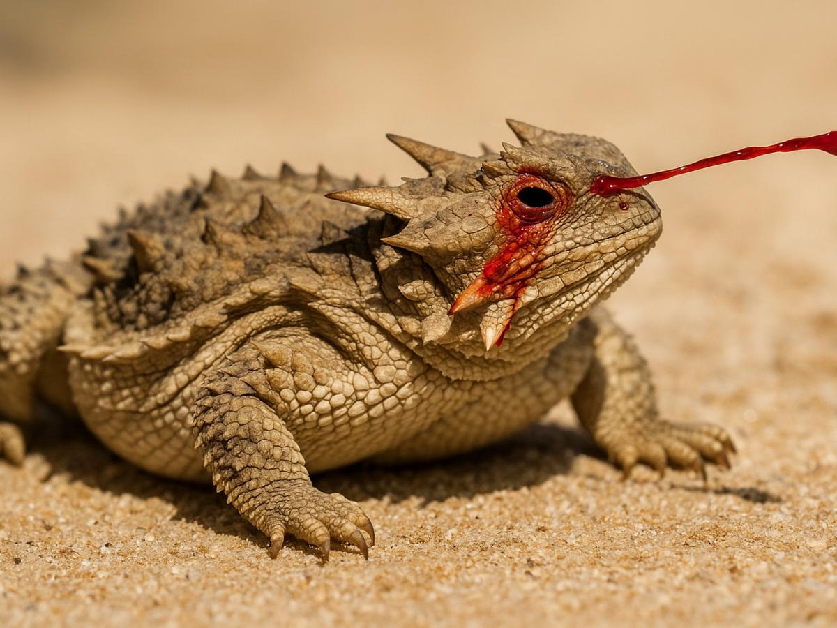 Как защитные механизмы работают Опасность приближается - ящерица замирает, полагаясь на маскировку. Если враг не уходит - она раздувает тело, демонстрируя шипы. Крайняя мера - выстрел кровью из глаз, направленный точно в лицо хищнику. Отступление врага - едкая жидкость заставляет хищника отойти, а ящерица скрывается в песке.Этот алгоритм природной защиты доказал свою эффективность — вид существует миллионы лет практически без изменений.