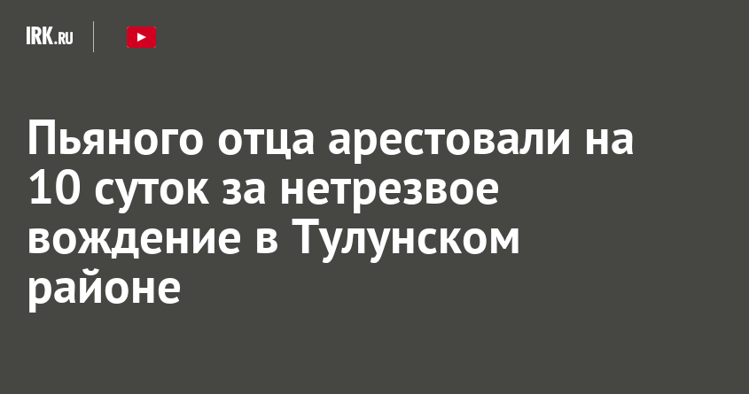 Пьяного отца арестовали на 10 суток за нетрезвое вождение в Тулунском районе
