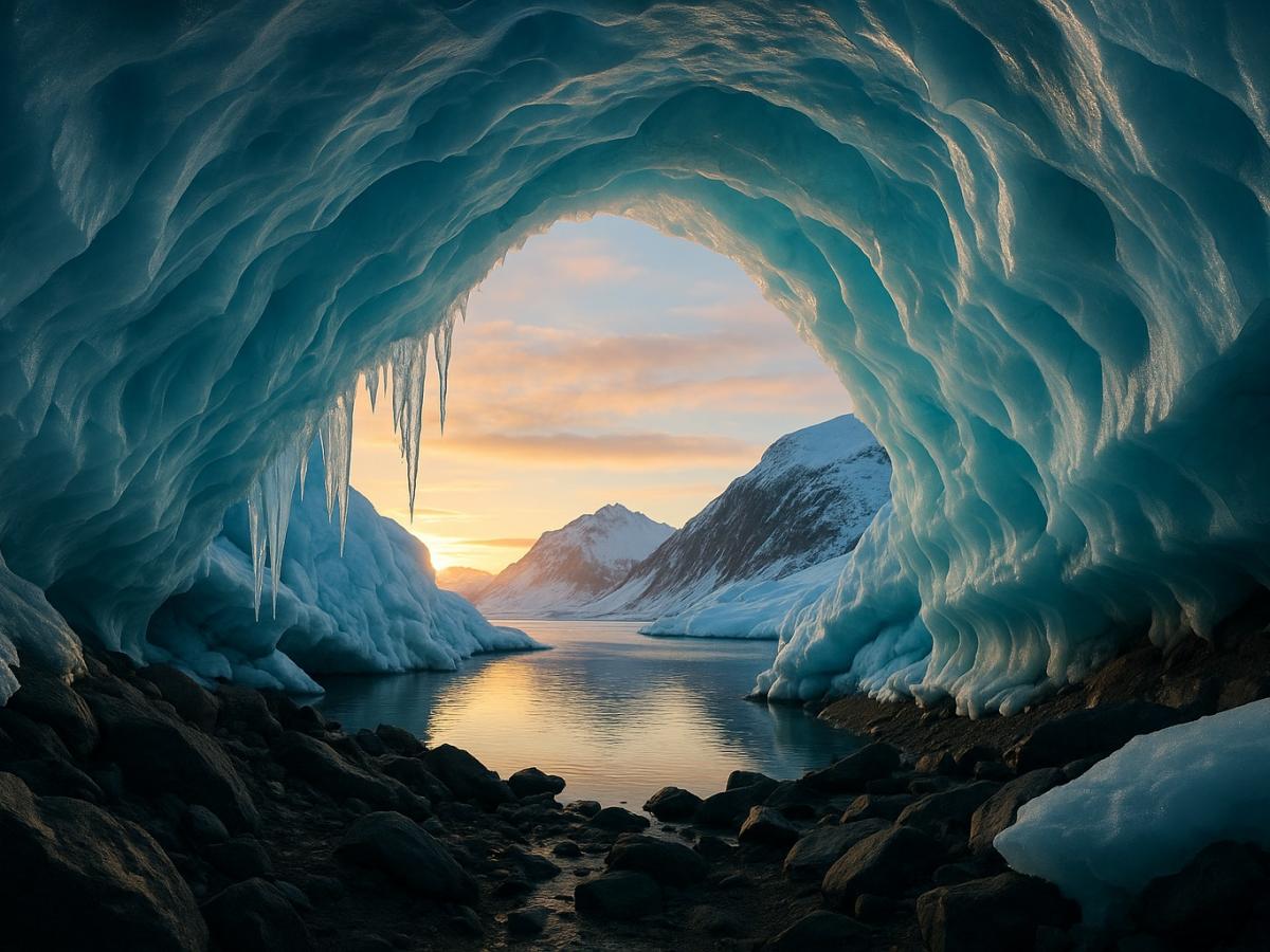 Фото: Generated by AI (DALL·E 3 by OpenAI) is licensed under Free for commercial use (OpenAI License) Ледяная пещера Пещера, в которой спрятана история климатаУчёные из Инсбрукского университета обнаружили в пещере Коув на севере Гренландии отложения кальцита — минералы, которые могут образовываться только в незамёрзшей земле при наличии воды. Это означает, что когда-то регион полностью оттаивал.
