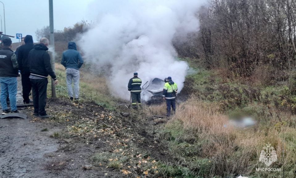 Пожарные МЧС ликвидировали возгорание автомобиля. В результате аварии погибли три человека, среди них один ребенок.