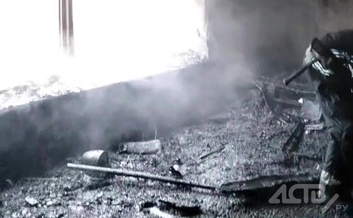 Появилось видео последствий крупного пожара в автомастерской в Южно-Сахалинске