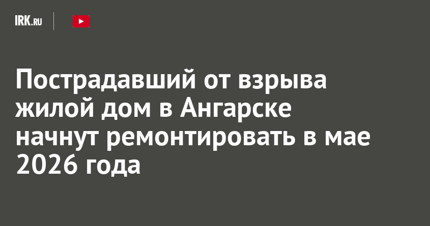 Пострадавший от взрыва жилой дом в Ангарске начнут ремонтировать в мае 2026 года