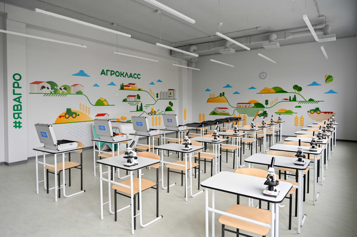 Также агрокласс оборудован виртуальным комплексом с интерактивным трехмерным атласом анатомии животных, агроинженерным комплексом и гидропонной установкой для изучения технологии выращивания растений, современным учебно-лабораторным оборудованием, комплектом для обследования и анализа почв, «умной теплицей», учебным доильным аппаратом. В агроклассе ученики узнают, что современное сельское хозяйство — это не только работа на земле, но и высокие технологии.