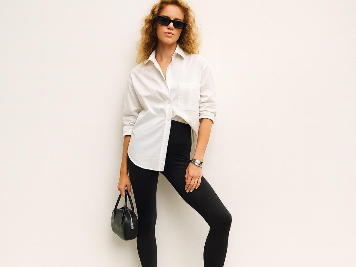 Фото: Generated by AI (DALL·E 3 by OpenAI) is licensed under Free for commercial use (OpenAI License) Модный образ с белой рубашкой Почему классические леггинсы устарелиЧёрные леггинсы — та база, что была с нами последние два десятилетия. Мы носили их в спортзал, на прогулку, даже на работу под удлинённый жакет. Но времена изменились: мода на "пилатес-маму”, минимализм и мягкий комфорт вдохновили дизайнеров искать новые формы привычной вещи.