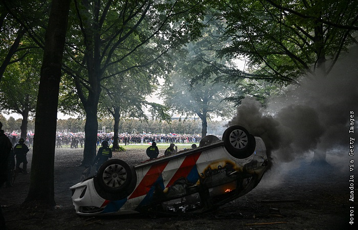 "Шокирующие и странные кадры насилия в Гааге после того, как демонстрация вышла из-под контроля", - написал в социальной сети X премьер-министр Нидерландов Дик Схооф. Он назвал "абсолютно неприемлемыми" действия протестующих.