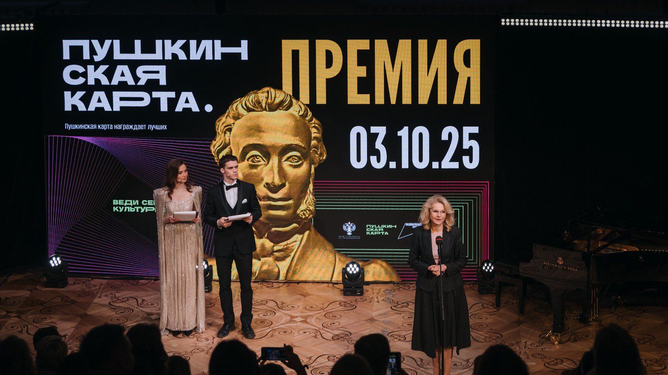 В пятницу 3 октября в Бетховенском зале Большого театра состоялась вторая церемония награждения премией «Пушкинская карта. Премия». Лауреатами стали учреждения культуры и регионы, внёсшие наибольший вклад в развитие программы «Пушкинская карта» в 2024 году.