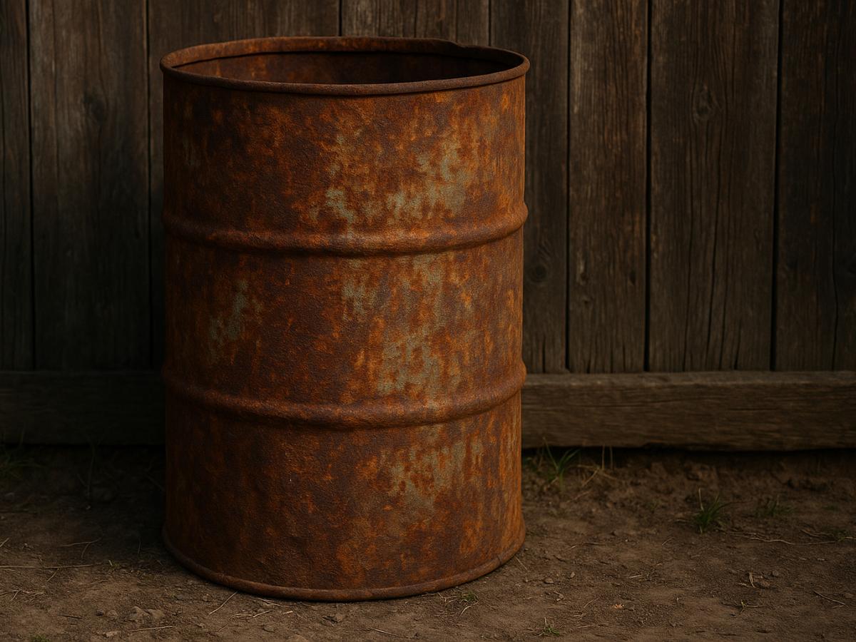 Фото: Generated by AI (DALL·E 3 by OpenAI) is licensed under Free for commercial use (OpenAI License) Старая ржавая бочкаПеред началом работы стоит подготовить емкость: очистить от ржавчины, смыть остатки краски, обезжирить поверхность и обработать грунтовкой для металла. Это продлит срок службы и сделает использование безопасным.