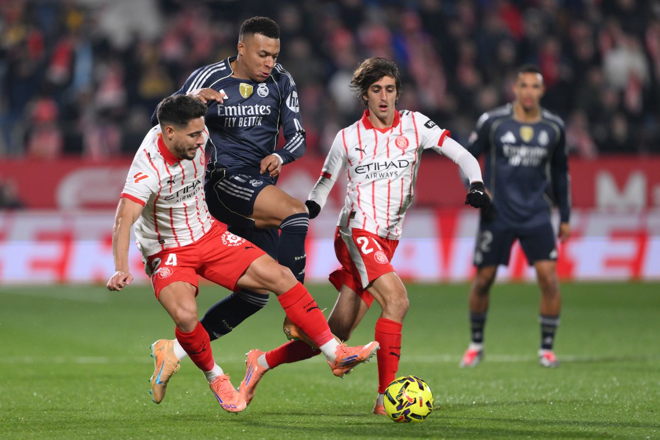 Sport.ru / Футбол. Встреча 14-го раунда испанской Ла Лиги между "Жироной" и мадридским "Реалом" подошла к концу. Соперники сразились на поле "Мунисипаль де Монтиливи", расположенном в Жироне. Главным судьей матча был назначен Де Бургос Бенгоэчеа из Бильбао. Итоговый счёт игры – 1:1.