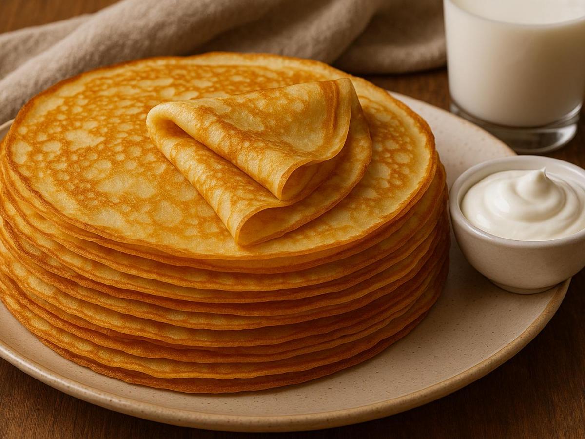 Фото: Generated by AI (DALL·E 3 by OpenAI) is licensed under Free for commercial use (OpenAI License) Тонкие блины на молокеСогласно рецепту, готовые блины после жарки остужаются и нарезаются тонкими полосками, которые добавляются в бульон.