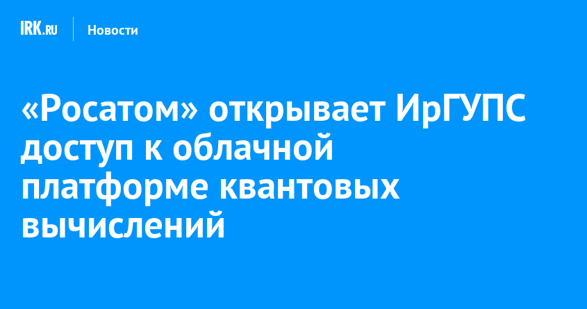 Компания «Росатом Квантовые технологии» предоставила Иркутскому государственному университету путей сообщения тестовый доступ к своей облачной платформе для квантовых вычислений. Ее разработали в рамках реализации Дорожной карты по квантовым вычислениям. Соответствующее соглашение подписали генеральный директор «Росатом Квантовые технологии» Наталья Кулагина и и. о. ректора ИрГУПС Юрий Трофимов. Университет стал первым в России высшим учебным заведением, которое получило такой доступ.