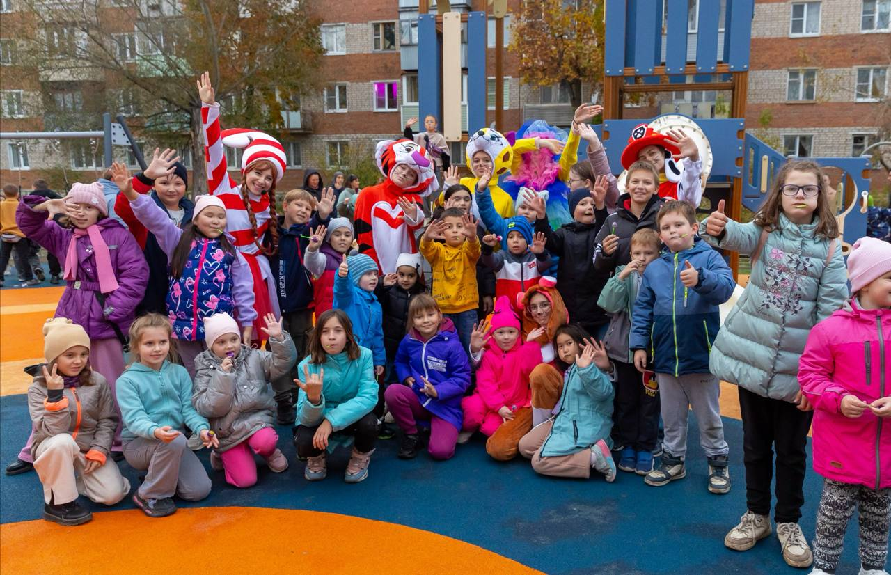 г. Орехово-Зуево, ул. Бирюкова, д.12; г. Орехово-Зуево, ул. Ленина, д. 45,47,49,53, ул. Карла Либкнехта, д.1, ул. Кооперативная, д. 1,9,15,17,19; г. Орехово-Зуево, ул. Урицкого, д. 59,61,63,65; г. Орехово-Зуево, ул. 1905 года, д. 5,5Б,7; г. Орехово-Зуево, ул. Первомайская, д. 49; г. Орехово-Зуево, ул. Бугрова, д. 11, ул. Текстильная, д. 9,11,13; г. Дрезна, Больничный пр., д.3; г. Дрезна, ул. Южная, д.4,6,6а,10,10а,12; г. Дрезна, ул. Южная, д.13а,15,17,19,21,27; г. Дрезна, ул. Юбилейная, д.12,14,16; п. Снопок Новый, ул. Центральная, д.8а,10а; д. Давыдово, ул. Заводская, д.6,9,19; г. Орехово-Зуево, ул. Володарского, д.13,15,17,19,23; г. Куровское, ул. Совхозная, д. 5,17,19,20,21,23; г. Куровское, ул. Школьная, д.10; г. Орехово-Зуево, ул. Пушкина, д.9,11,13; г. Орехово-Зуево, ул. Барышникова, д. 23,25,256.Помимо установки новых игровых комплексов, проведено сопутствующее благоустройство территорий. На площадках уложены тротуарные дорожки, смонтировано наружное освещение, а также установлены камеры видеонаблюдения, подключённые к системе «Безопасный регион».