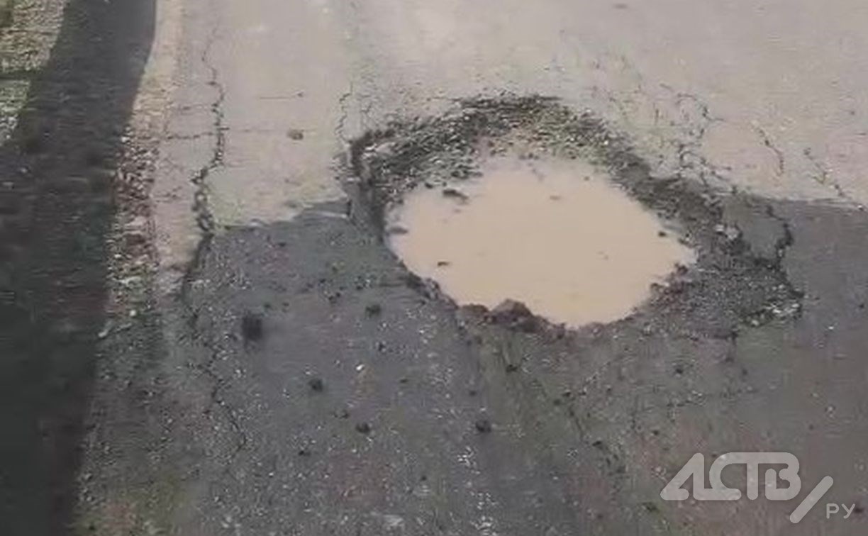 Сахалинец пробил два колеса на "сумасшедших" ямах в Макаровском районе