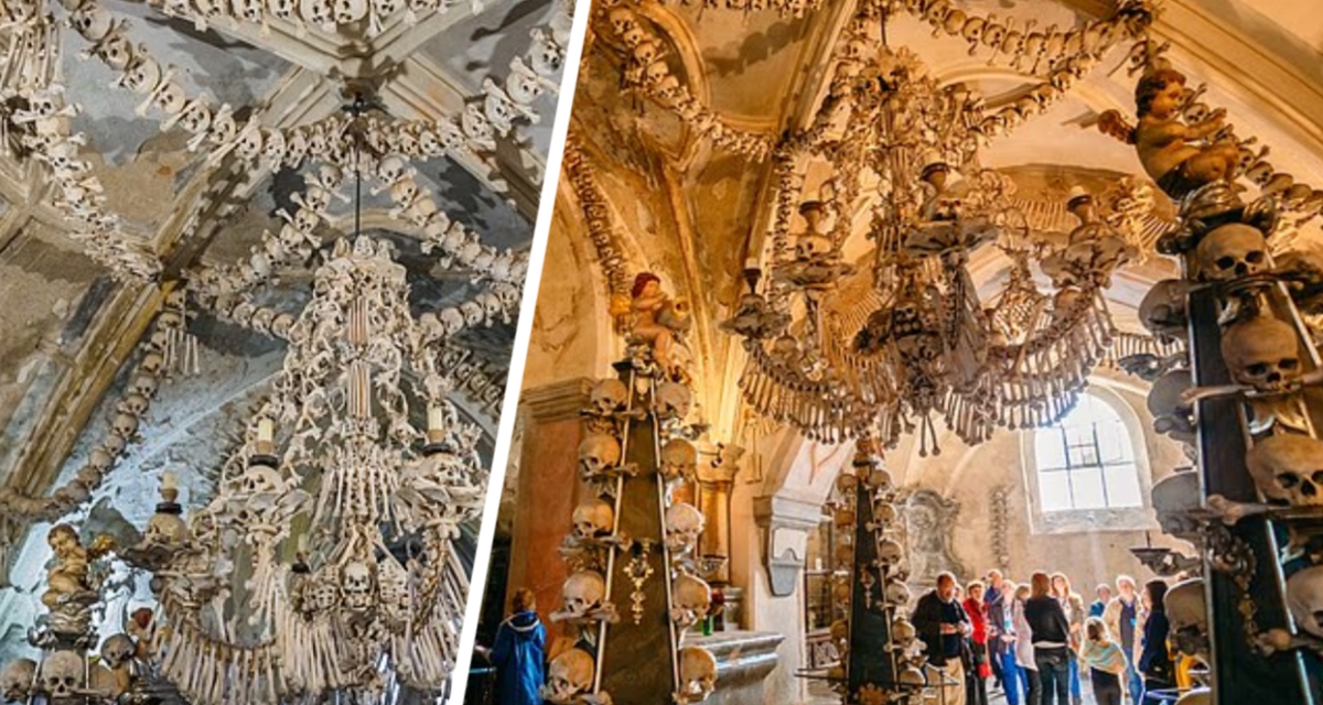 Речь идет о Седлецкой костнице, или, как ее чаще называют, Церкви костей. Этот римско-католический склеп – не просто место захоронения, а настоящий мавзолей, украшенный останками от 40 000 до 70 000 человек, что составляет более восьми миллионов отдельных костей!