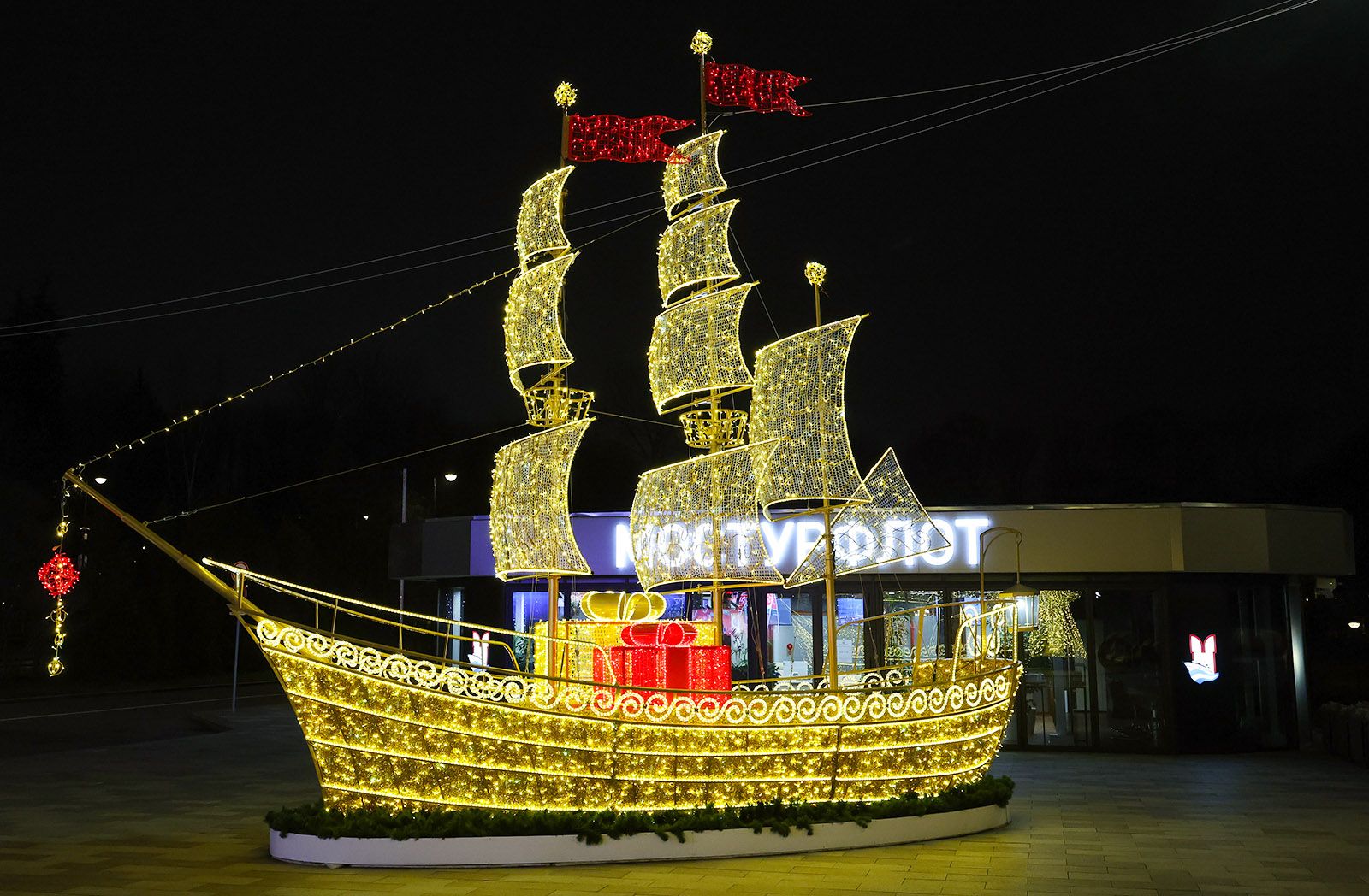 «Тематические конструкции представляют собой корабли с наполненными ветром парусами, на палубе которых установлены новогодние подарки. Длина каждого судна составляет 10 метров, они украшены яркой светодиодной подсветкой. Фрегаты разместили возле зданий вокзалов, рядом с ними установили новогодние ели, декорированные разноцветными шарами, звездами, светящимися гирляндами и другими украшениями. На Северном речном вокзале дополнительно смонтировали световые деревья», — добавил Петр Бирюков. Новогодняя МоскваК новогодним и рождественским праздникам по всему городу установили более четырех тысяч световых декоративных конструкций и новогодних елей. Они создают праздничную атмосферу и служат дополнительным источником освещения в темное время суток.