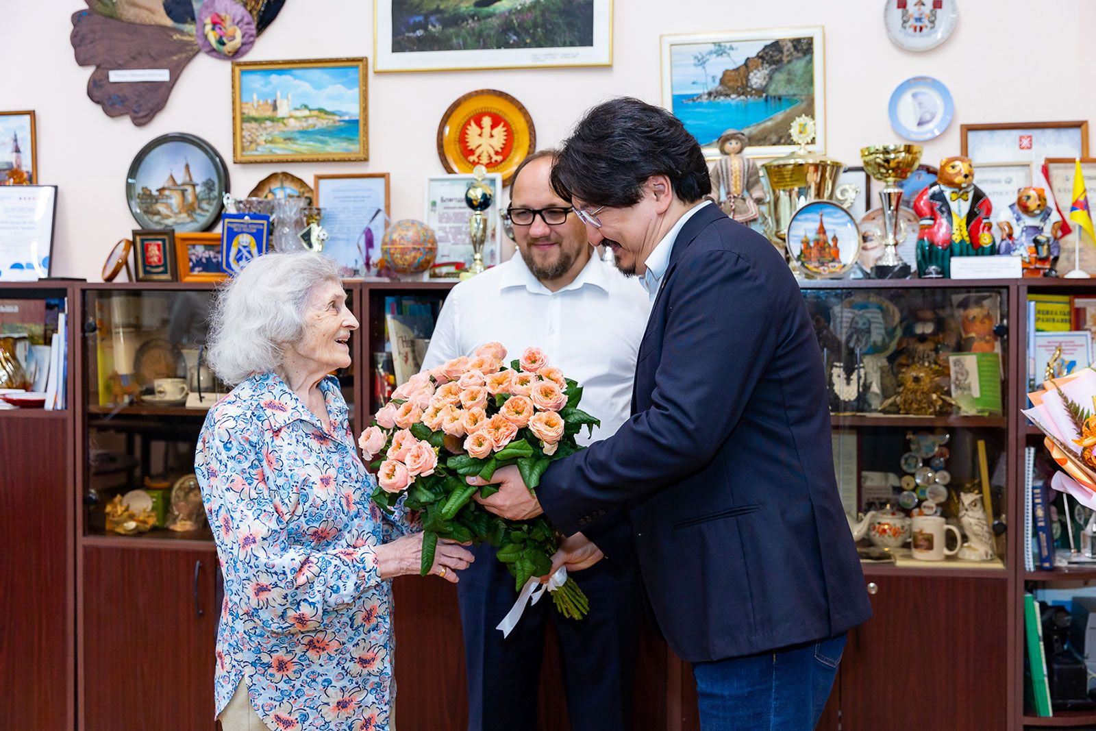 Собянин поздравил учителя биологии школы № 1522 Элеонору Андрееву с 90-летием