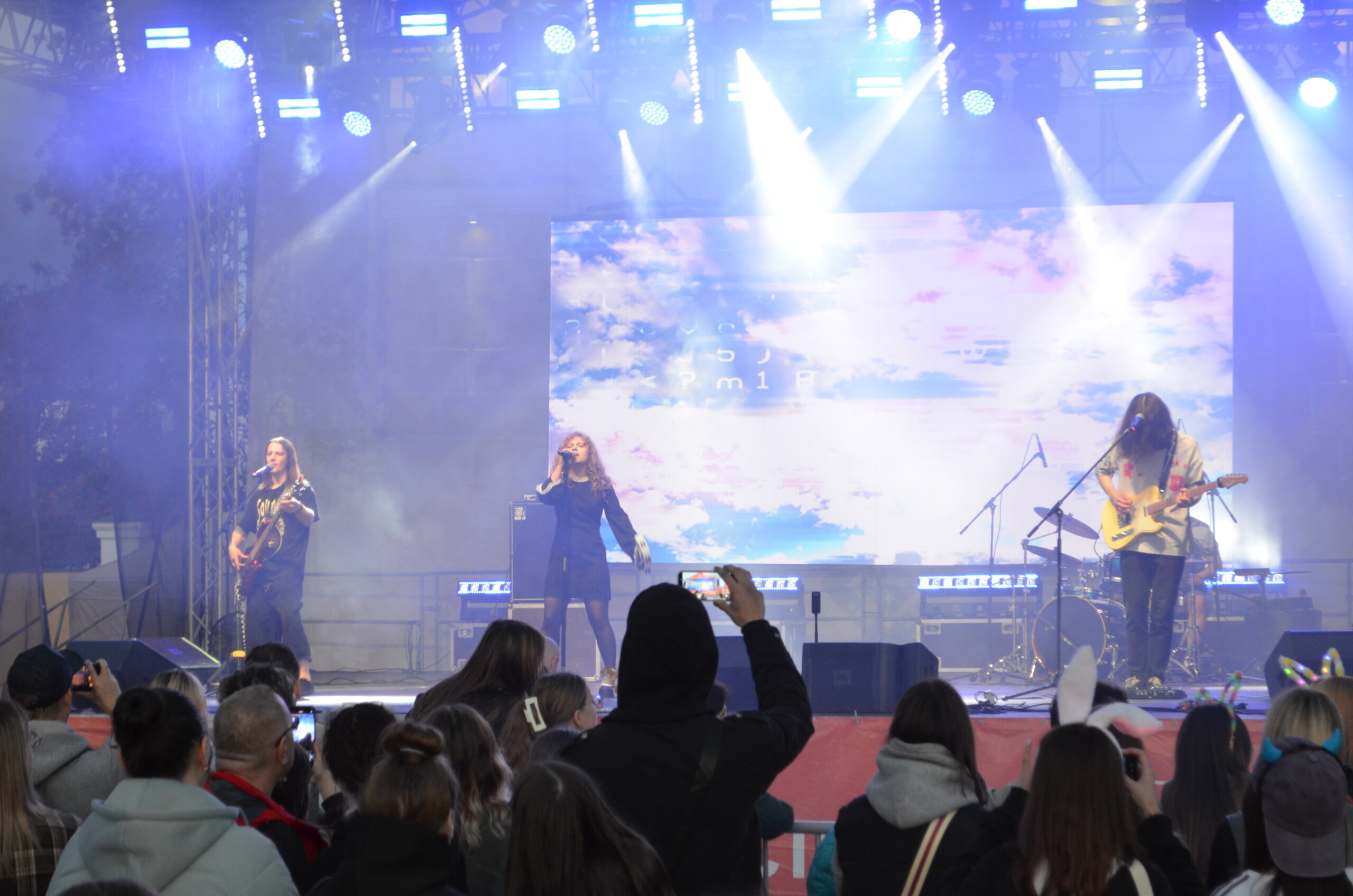 Тепло они приняли и группу «Ева Аладин» (мы не ошиблись — «Аладин» в названии группы пишется именно так, с одной «Д», по их собственной задумке). Фанаты подготовились и бодро подпевали их песням. Но их было не так много, большинство слушателей просто наслаждались процессом, потому что такой группы и их творчества не знают. Хотя слова, как отметили присутствующие, разобрать было сложно из-за своеобразной техники исполнения.