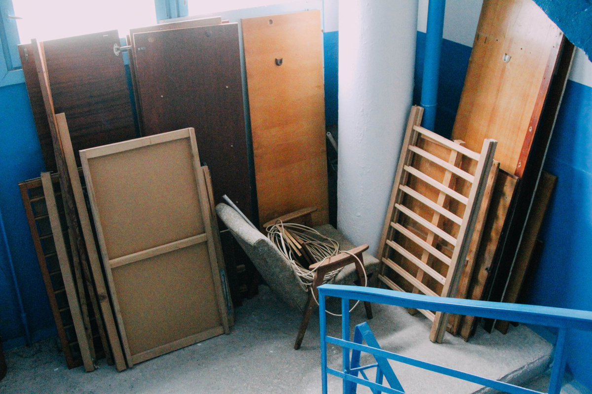 Как сообщает портал DonDay, из-за нехватки подсобных помещений и кладовок во многих старых домах, жильцы самовольно складируют вещи на лестничных площадках.