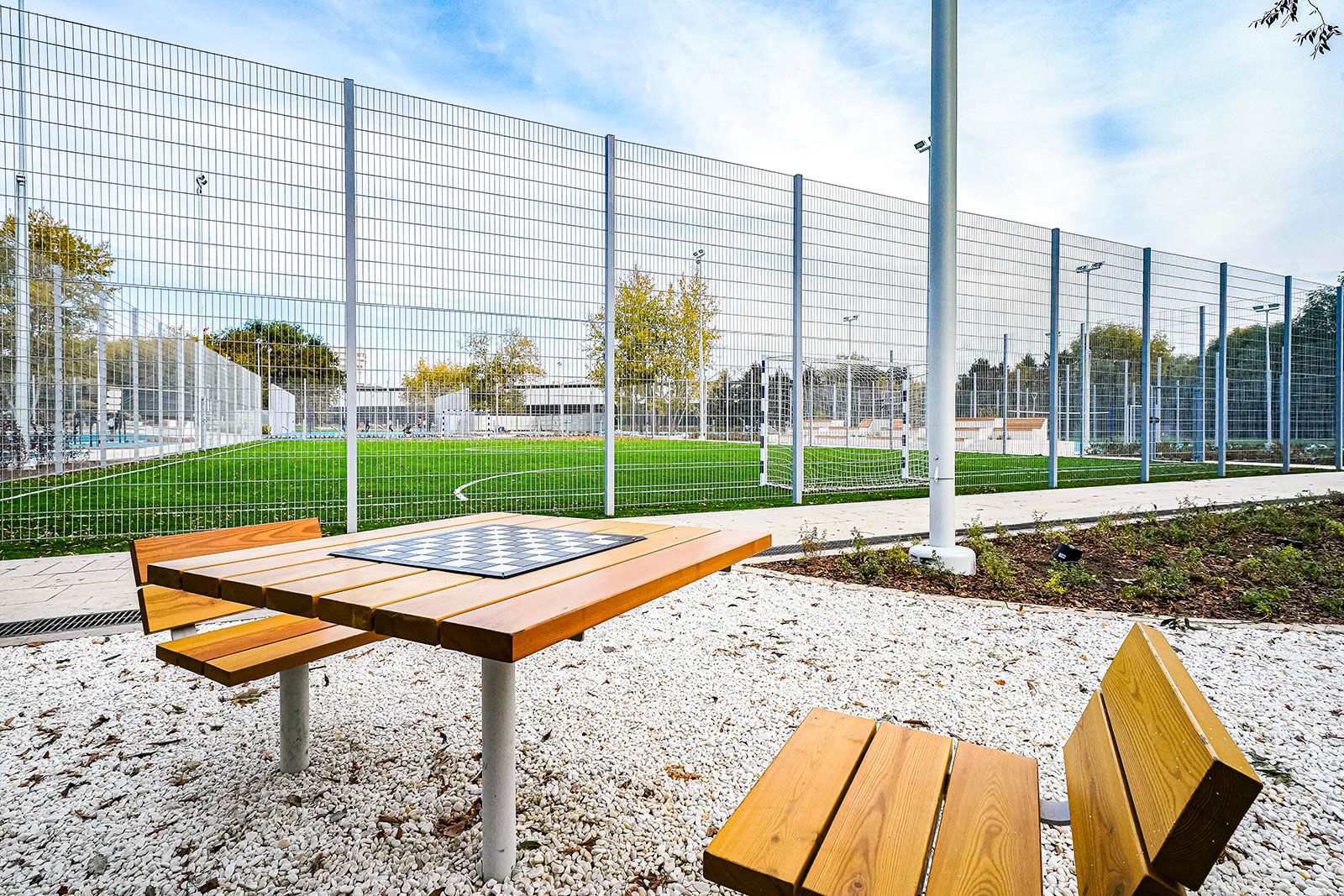 Кроме того, было организованы две зоны с силовыми тренажерами. На площади 210 квадратных метров разместили брусья, оборудование для жима лежа, подтягивания и отжимания с противовесом, гребную тягу и другие тренажеры. В воркаут-зоне появились турники, гимнастические кольца и шведские стенки. В спорткластере также оборудовали места для игры в шахматы, настольный теннис и панна-футбол. А для детей — отдельную зону со спортивно-игровыми комплексами.