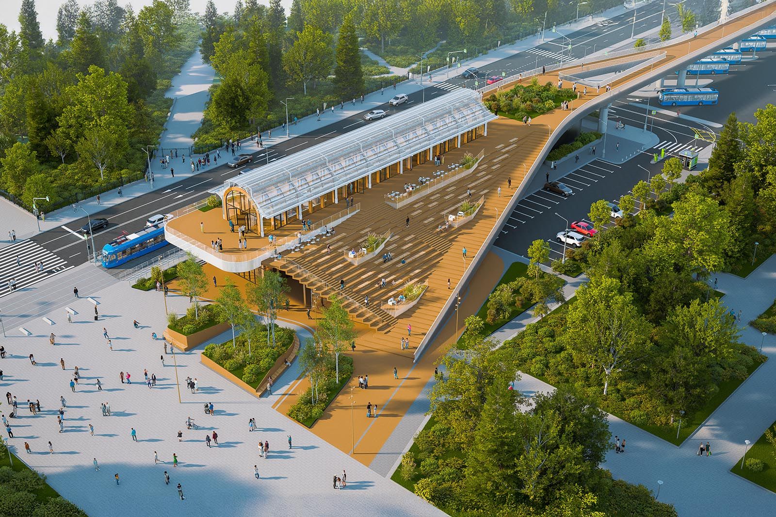 Там появятся прогулочные зоны и сопутствующая инфраструктура. Пять из шести бывших станций монорельса преобразуют в общественные пространства с кафе, ресторанами и выставочными залами. Для обеспечения доступности парка сделают восемь дополнительных спусков.