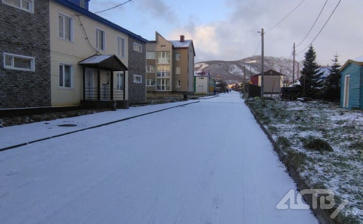 Между тем Северо-Курильск припорошило снегом: