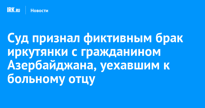 Суд признал фиктивным брак иркутянки с гражданином Азербайджана, уехавшим к больному отцу
