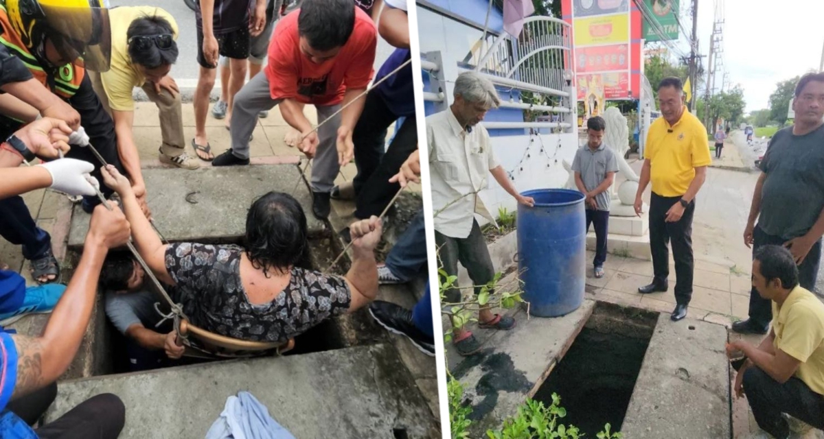 Тайская рулетка: турист провалился в канализацию на улице в Таиланде