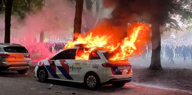 Ненависть тысяч голландцев направлена на одну из самых радикальных по либерализму в Европе партию «Д66» («Демократы 66»), так названную потому, что она была создана ещё в 1966 году. Изначально мирная демонстрация с требованием ужесточить политику предоставления убежища переросла в хаос, вандализм и ожесточённые столкновения с полицией. Протестующие били окна в штабе «Д66», жгли полицейские машины и бросались на спецназ. Силовики по старой европейской традиции применили водомёты и слезоточивый газ.