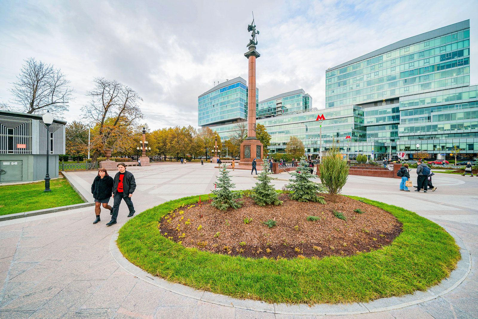 Благоустроенную территорию украсили более 20 остролистных кленов. Крупномерные деревья теперь обрамляют центральную часть площади с памятником-стелой. Со стороны Петровского бульвара высадили 10 остролистных кленов высотой 4-5 м. Их возраст – 15-18 лет, обхват ствола – 20-25 см, а диаметр кроны – 100-150 см.