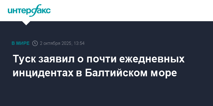 Москва. 2 октября. INTERFAX.RU - Премьер-министр Польши Дональд Туск заявил, что инциденты в Балтийском море происходят почти каждый день, и назвал это новым видом войны. Об этом сообщают польские СМИ.