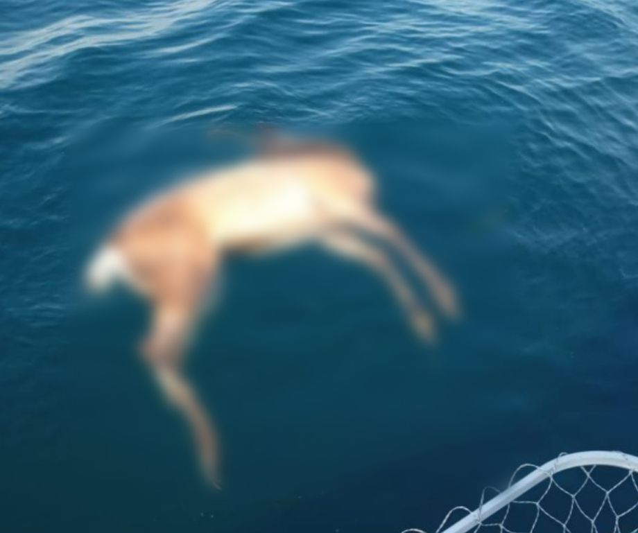 «Убегал от тигра?»: приморские рыбаки наткнулись на тушу оленя в море