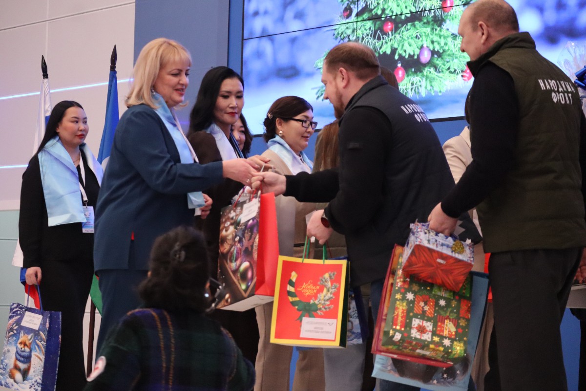 Благотворительная акция «Учителя — детям» прошла в рамках открытия конкурса «Учитель года» в Якутске. Педагоги-конкурсанты собрали и передали новогодние подарки для детей из семей участников специальной военной операции. Вручение прошло на открытии профессионального конкурса.